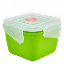 Универсалните контейнери с клипсове са подходящи за съхранение на хранителни продукти. Четиристранното закопчаване на капака осигурява херметичност на контейнера. Серията включва 3 контейнера с квадратна форма, размери: - 0,45 л - 0,9 л - 1,5 л. от полипропилен. Материалът не съдържа токсини и не реагира с храната. Контейнерите са достъпни за всички слоеве от населението.