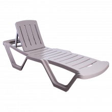 Устойчив пластмасов шезлонг за басейн и плаж. Колелца и регулируема облегалка. Подсилен корпус.