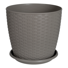 Саксията „Ратан“ има класическа кръгла форма и подложка. Повърхността е матова, декорирана във формата на ратаново плетене. Благодарение на дизайна си, саксиите „Ратан“ могат да се използват за декорация както на помещения, така и на елементи от градинската архитектура. Широка гама от размери: дълбоки саксии с диаметър 20, 24 и 30 см за засаждане на малки дървета и растения с разклонена коренова система, саксии с диаметър 16 и 12 см за засаждане на кактуси, теменужки и други малки цветя. Саксията запазва външния си вид през целия си експлоатационен живот.