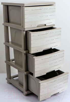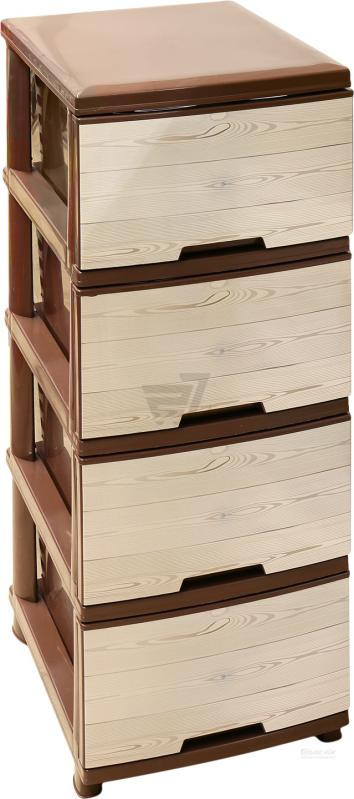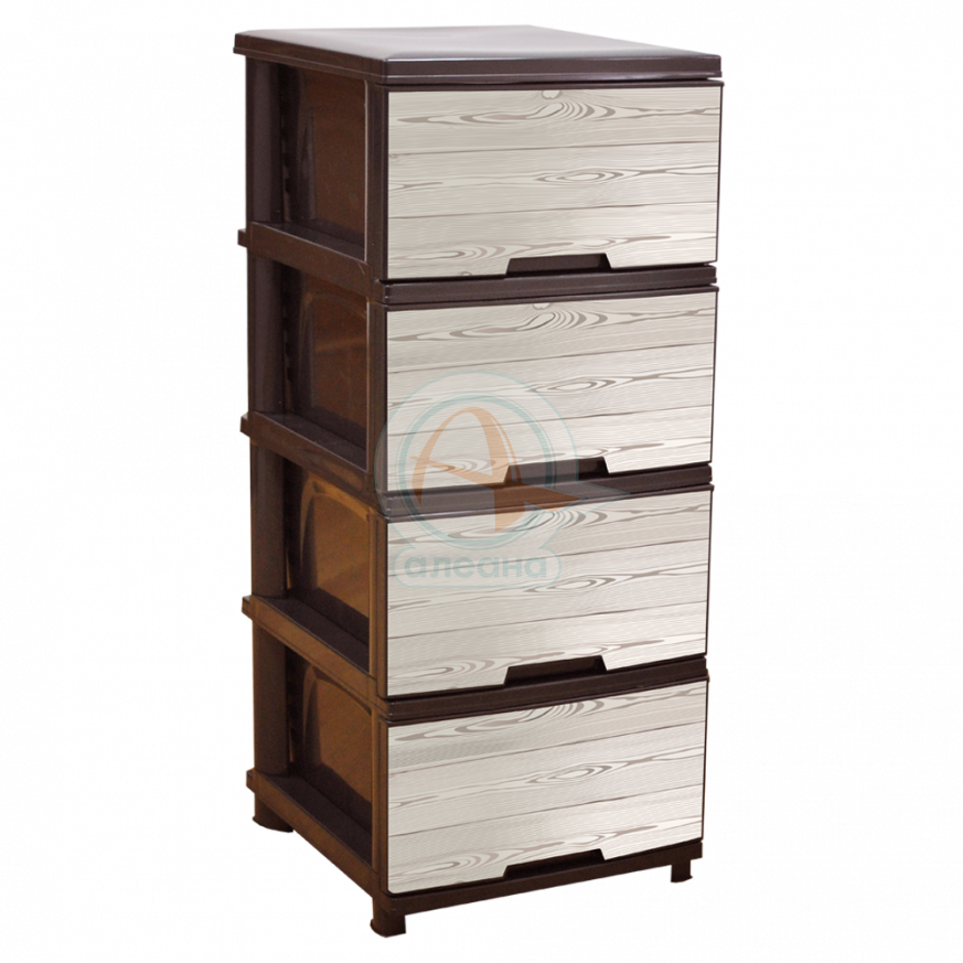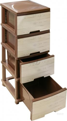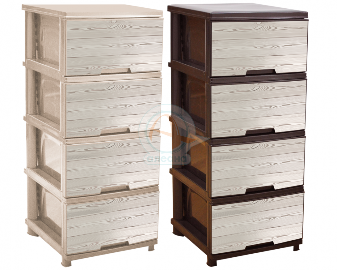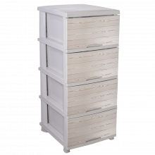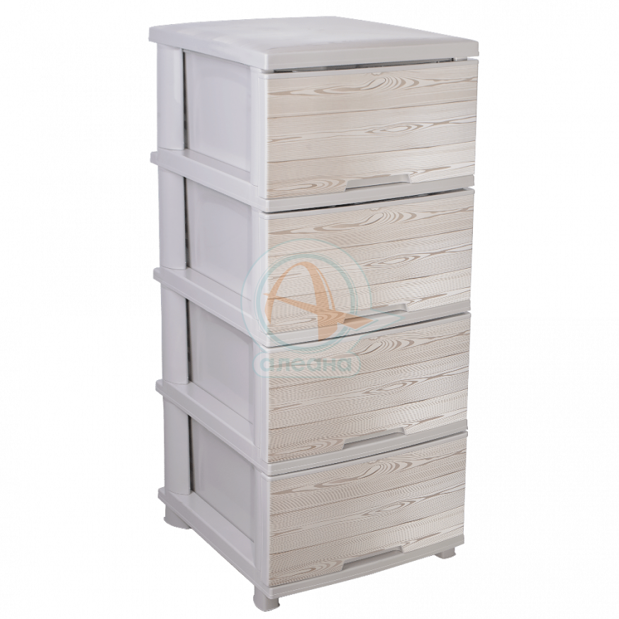 Пластмасов шкаф с четири чекмеджета и декор ДЪРВО - КРЕМ