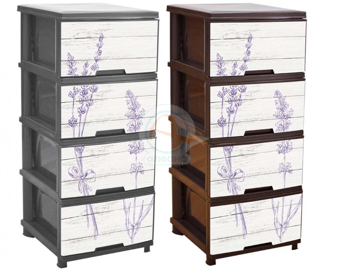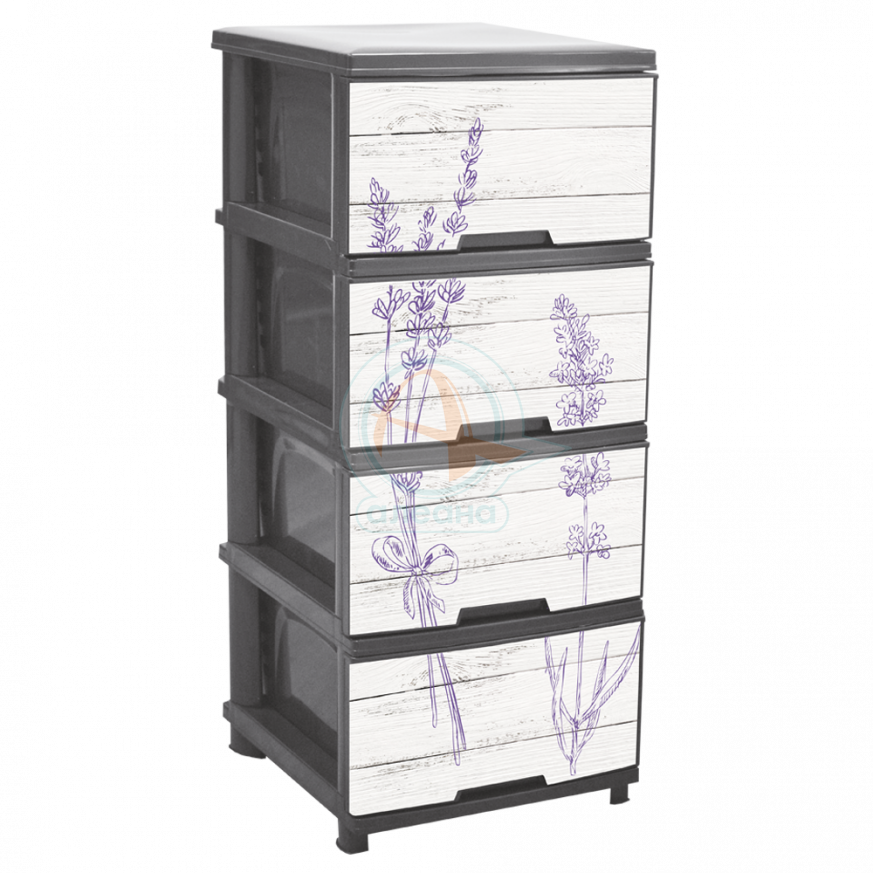 Пластмасов шкаф с четири чекмеджета и декор ЛАВАНДУЛА - КАФЯВ или СИВ