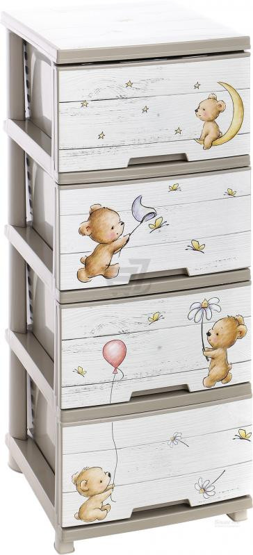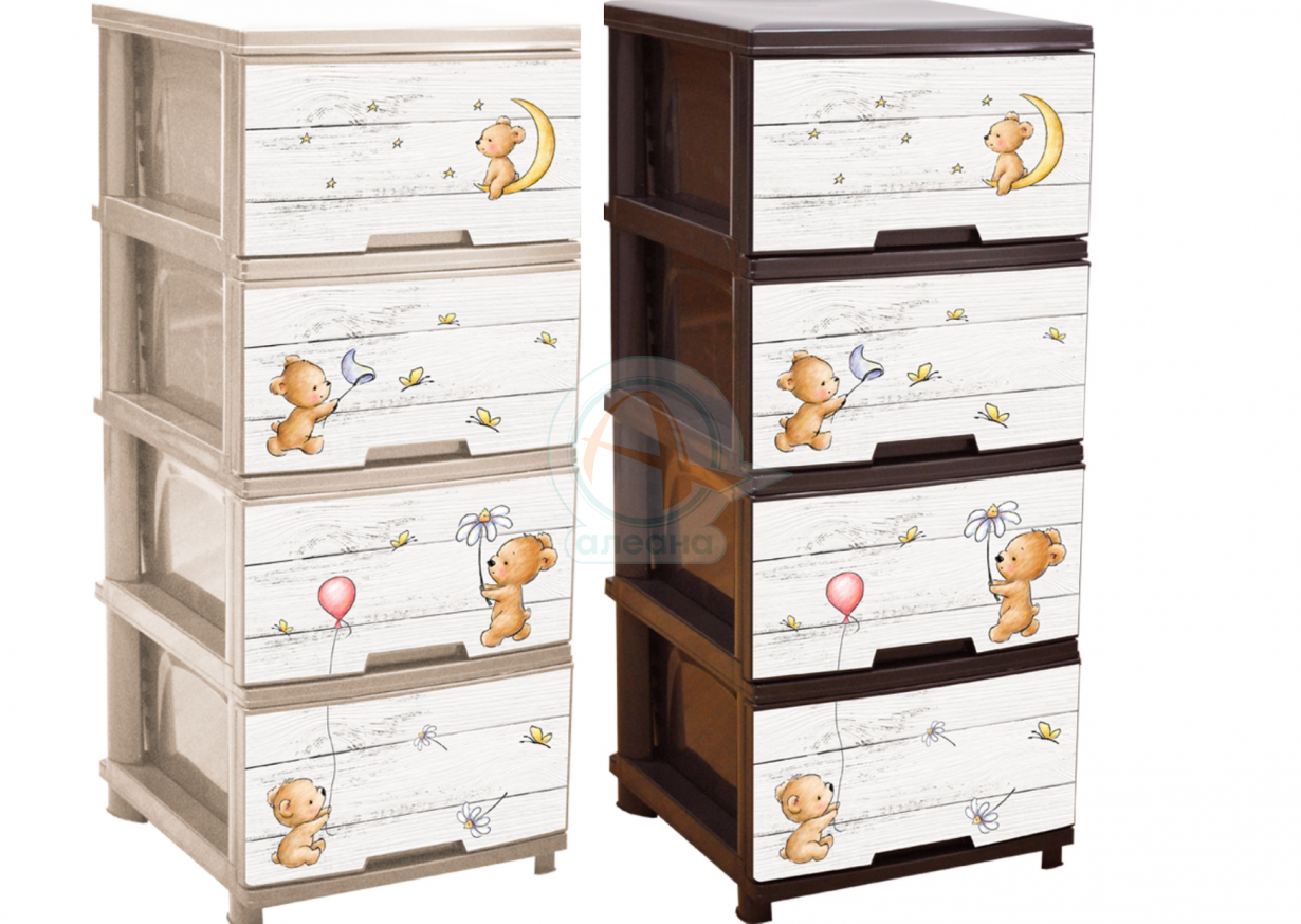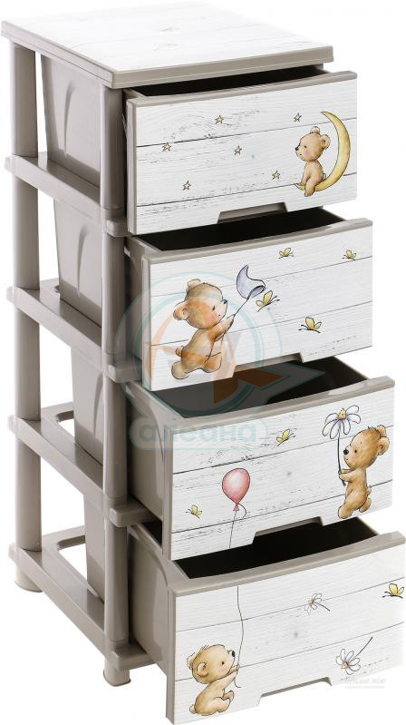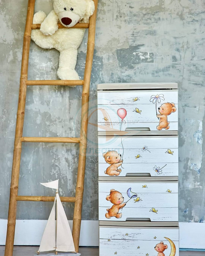 Пластмасов шкаф с четири чекмеджета и декор МЕЧЕТА